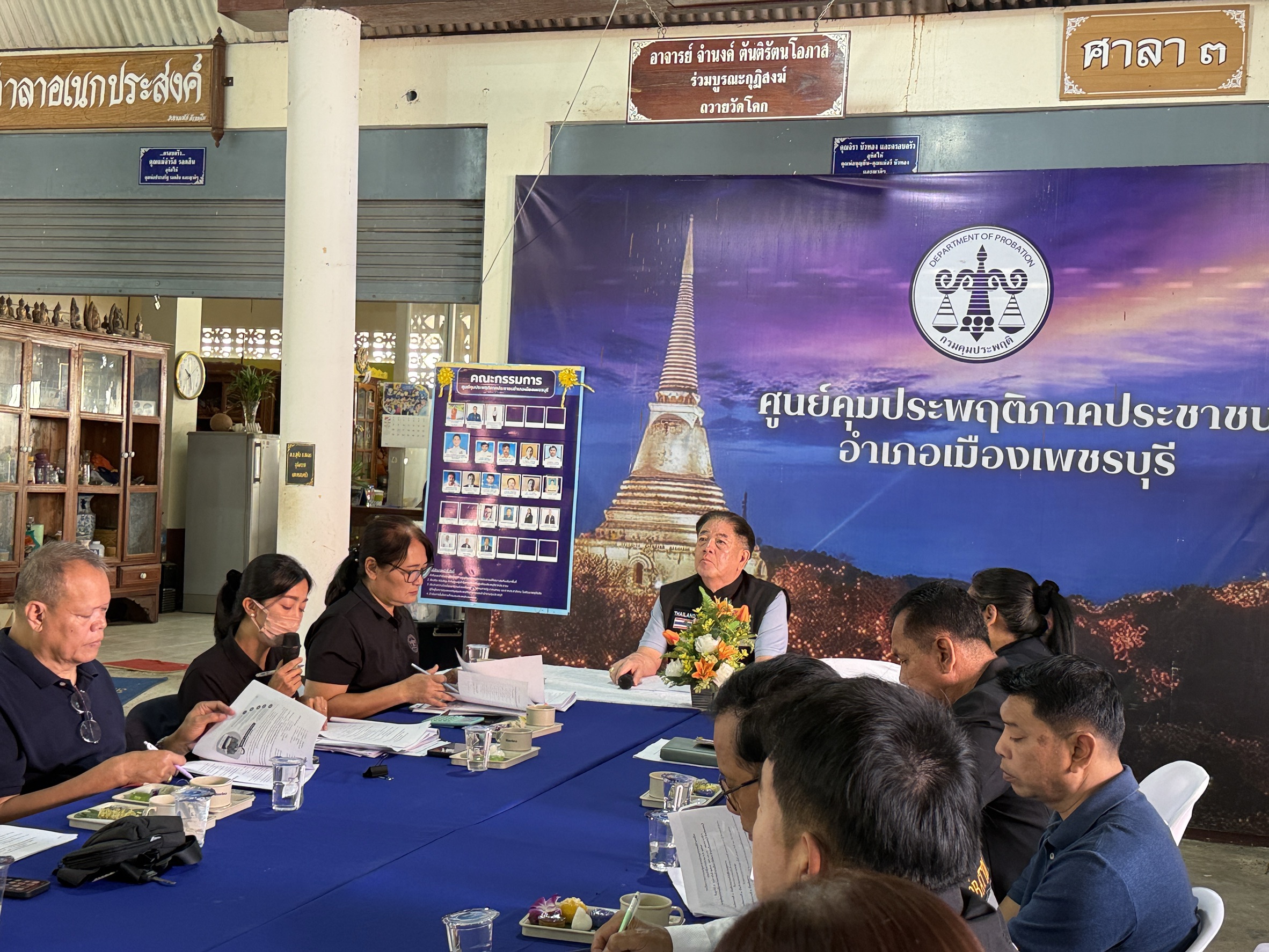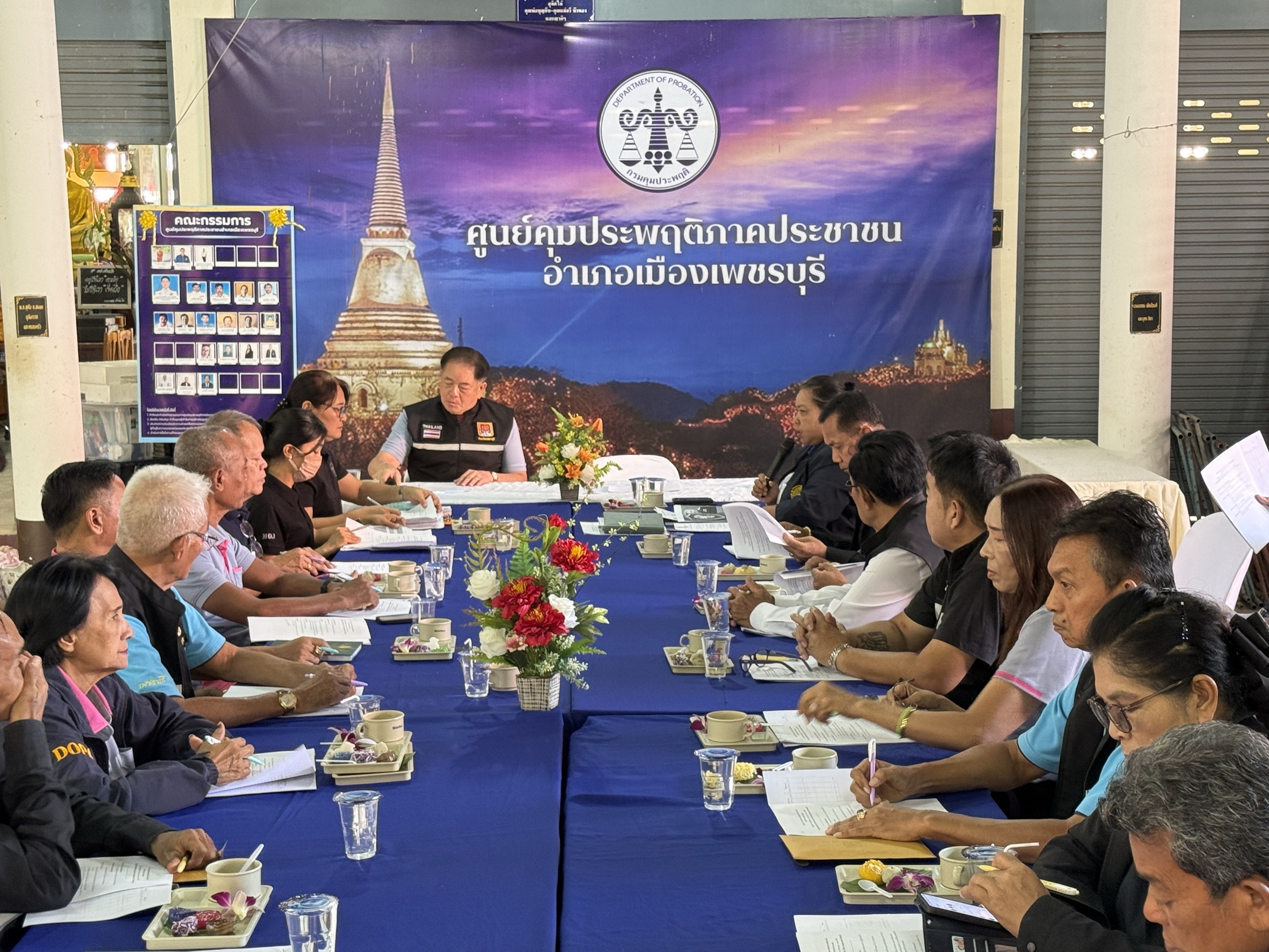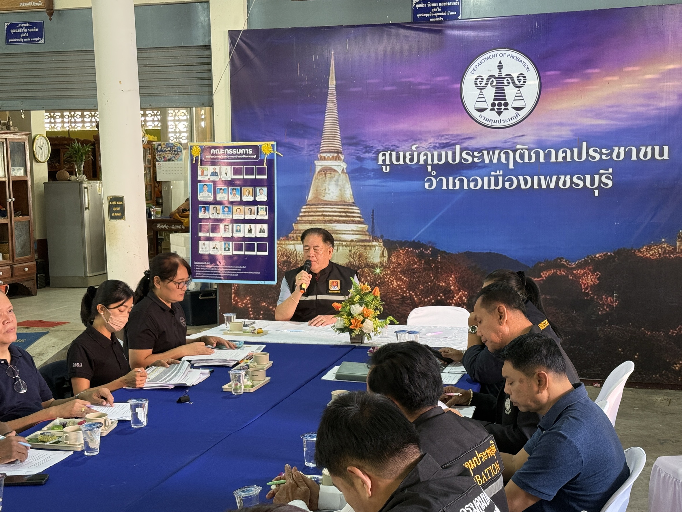 โดยมี ร.ต.ต.กนกศักดิ์ มุทธากาญจน์ ประธานคณะกรรมการอาสาสมัครคุมประพฤติจังหวัดเพชรบุรี เป็นประธานในที่ประชุม มีอาสาสมัครคุมประพฤติอำเภอเมืองเพชรบุรี เข้าร่วมประชุมจำนวน 25 คน